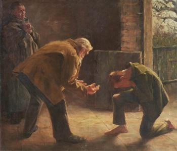 Так Господь стучит в дверь сердца каждого грешного человека, призывая возвратиться к нему. И вот благодать коснулась сердца младшего сына. Он прозрел, он вдруг вспомнил, что он сын отца, о своем достоинстве, вспомнил, что даже наемники в доме отца имеют в избытке хлеб, а он гибнет от голода. Здесь происходит решительный поворот его жизни. Это то, что называется покаянием. Покаяние - это коренной перелом образа мыслей и жизни человека, это осознание своей вины и решимость совершенно изменить и исправить свою жизнь. И сын говорит: встав, пойду к отцу моему и скажу ему: отче, я согрешил на небо и пред тобою и уже недостоин называться сыном твоим, но прими меня как одного из наемников твоих. И он пошел к отцу.