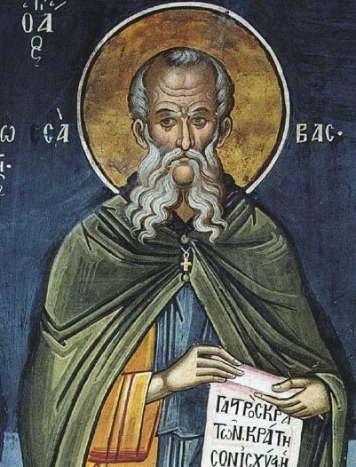 Святой Савва, озаривший палестинскую пустыню своим житием, подобным ангельскому, родился в небольшом городке Муталаска, в Каппадокии, в 439 году. Уже в восьмилетнем возрасте он, осознав суетность мира сего и исполненный пламенной любви к Богу, вступил в расположенный неподалеку Флавианский монастырь. Несмотря на все старания его семьи вернуть мальчика назад, тот остался непреклонным в своем решении и быстро приобщился ко всем монашеским послушаниям, в особенности к воздержанию и чтению Псалтири наизусть.